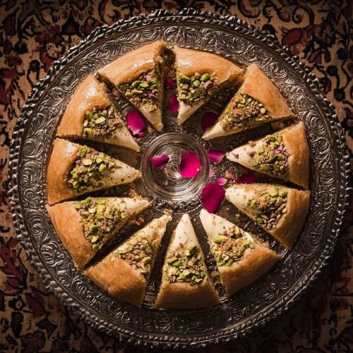 Fill the opening with Ashta and dip the top in crushed pistachios.