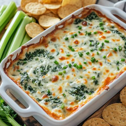 Remove the dish from the oven and let it cool slightly before serving. This dip is best enjoyed warm, served with naan bread, crackers, or crunchy veggies. It’s creamy, cheesy, and guaranteed to be a hit!