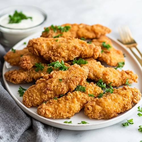 • Coating Process: Dip each piece of chicken first into the flour mixture, then into the batter, and back again into the flour mixture.