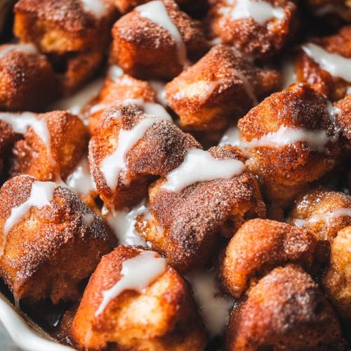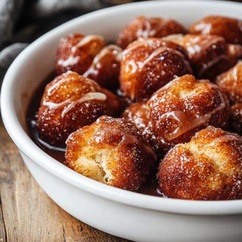 Prepare a small bowl with the cinnamon and sugar mixture. Melt additional butter and place it in a separate bowl. One by one, dip each dough ball into the melted butter, making sure it’s lightly coated. Then, roll the buttery ball into the cinnamon sugar mix, giving it a sweet, spiced coating.