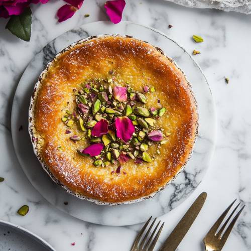 While the knafeh is baking, you can prepare a simple sugar syrup to enhance its sweetness. In a small saucepan, combine 1 cup of sugar and 1/2 cup of water. Bring the mixture to a boil over medium heat, stirring occasionally. Allow it to simmer until it slightly thickens. Then, add a squeeze of fresh lemon juice to balance the sweetness and remove from heat. Let the syrup cool to room temperature before drizzling it over the warm knafeh.