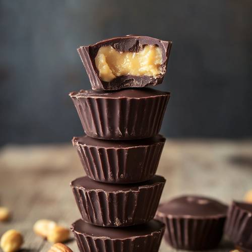 • Prepare the Chocolate Base: In a microwave-safe bowl, melt 1/3 cup of chocolate chips with 1 tsp. of coconut oil. Stir until smooth. Drop a small spoonful of the melted chocolate into each mini muffin liner. Place the tin in the freezer for about 5 minutes to set while you prepare the filling.