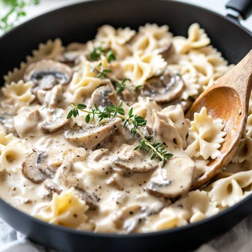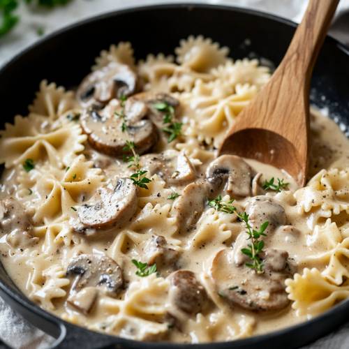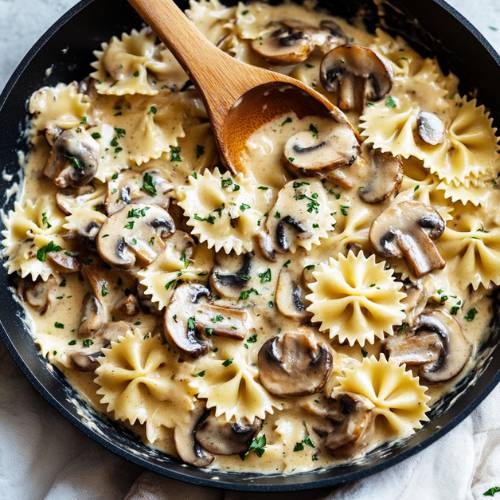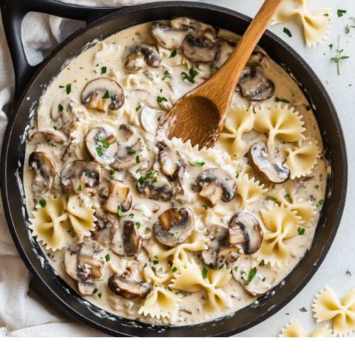 This mushroom cream sauce pairs beautifully with bow tie pasta, but you can also try it with fettuccine or pappardelle. For a heartier meal, add grilled chicken or sautéed shrimp. It also works as a sauce over baked potatoes or roasted vegetables.