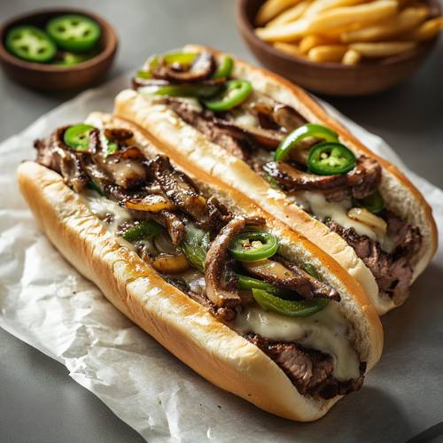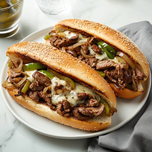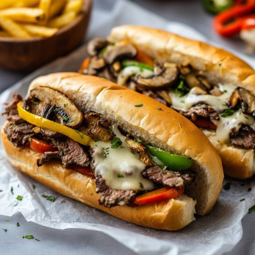 Serve your Philly steak sandwiches with crispy fries or a fresh green salad. A side of coleslaw or pickles also pairs wonderfully.