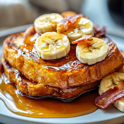 Once your stuffed French toast is cooked to golden perfection, transfer it to a plate and get ready to dress it up! Dust a bit of powdered sugar on top for that classic sweet finish. If you like, drizzle a little maple syrup for extra yumminess. You can also add toppings like fresh berries, whipped cream, or even a sprinkle of granola for texture. And that’s it you’re ready to dig in and enjoy a breakfast that’s basically dessert in disguise!